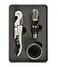 A complete set of wine tools in a sleek tin. Includes a corkscrew, pourer, stopper, and drip ring. Made with food safe silicone.