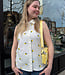 Fresh and playful, this sleeveless collared button-up is covered in embroidered lemons for a bright, summery look with a crisp, polished feel. Made with 30% Viscose, 30% Cotton, 30% Polyester, 10% Linen