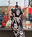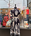 Elegant black & white boat neck patterned dress with ribbon tie Read more..