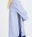 A playful take on a classic pinstripe shirt! Lightweight cotton blend sits effortlessly and can be dressed up, and the unique stripe on the side stands out. 50% Cotton, 50% Polyester