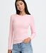 Soft cotton and baby pink is perfectly complimented by a delicate lettuce edge at the wrists and hem. This feminine piece is a wardrobe staple that can be layered or worn with your favourite denim! Ribbed for comfort and stretch.