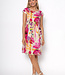 Cap Sleeve Linen Dress w/Elastic Waist - Fuxia