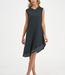 Sleek and sophisticated, this sleeveless dress features an asymmetrical hem and fluid drape for effortless elegance.