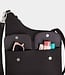 This everyday anti theft bag features a front zip pocket, two magnetic flap-over pockets. A 4.5L main compartment, RFID card and passport slots, 2 drop pockets, a large zippered pocket, and tethered keyclip. A rear zip pocket keeps important items close. Read more..
