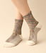 Crew Socks - "Brueghel" Floral Applique & Pointelle Grey