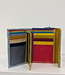A colourful, snap close wallet featuring two cash slots, multiple card slots, and zip-up coin section. Read more..