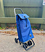 Aluminum trolley with 4 wheels. Foldable bottom base and front support. Can be used with 2 or 4 wheels. One exterior zip pocket and one interior zip pocket.