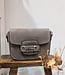 Supple suede exterior is accented with a gold faux clasp. This purse slides in and out of the suede strap easily to access the zipper to the main compartment. Removeable matching crossbody strap is adjustable. Suede. Made in Italy.