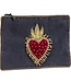 This unique pouch embroidered with gold thread and glass beads will make for a great conversation starter. The handcrafted embellishment incorporates a jeweled crown. The elegant colouring and velvet texture makes it stand out.