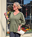 Lightweight cotton with a hint of cashmere is soft and easy to wear. A deep green colour elevates this sporty-inspired piece with subtle glittery stripes. Relaxed fit pairs easily with jeans and sneakers.