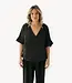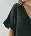 Designed in an oversized style, the Crinkle Crop Top has half sleeves, with a cropped cut at the waist, and a V neckline.