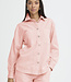 A gorgeous parfait pink denim button-up shirt. Detailed with two front pockets, a collar, and buttoned cuffs. This soft and lightweight piece can be worn open or closed and dressed up or down!