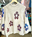 Adorable crop sweater with wide 3/4 sleeves and slightly raised multicolor flowers. One size fit most.