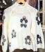 Adorable crop sweater with wide 3/4 sleeves and slightly raised multicolor flowers. One size fit most. 52% acrylic, 22% polyester, 18% wool. Made in Italy