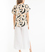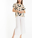 Brushstroke pattern makes this top pop! Perfect for anyone with a funky or artistic side. Looks fabulous with any linen neutral pants: white, black, brown... Cuffed sleeves and a loose fit have a laid back vibe.