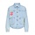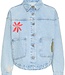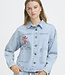 A straight, boxy fit denim jacket that features large patch pockets and button front. Embroidered flower motifs and a rounded hem complete the modern look. 100% Cotton