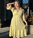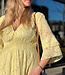 This stunning dress is perfect for any occasion or just to wear in the sun! Featuring ruffled bell sleeve, a rushed elastic waistline and a cotton liner. Made in Italy Made with 100% Cotton