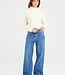Our popular Layla style features a front seam detail down each leg for a flattering look. Mid-rise. Medium blue wash, wide straight leg with 30-inch inseam. 20% RCS certified recycled cotton.