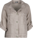 Lightweight linen button down crop safari jacket / blouse. Featuring front pockets, wooden buttons and full length sleeves roll up to 3/4 length. 100% linen, designed in Canada, made in italy
