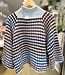 A fun mock neck sweater with multicoloured diamond patterning. One Size 38% Laine Wool 32% Acrylic 8% Viscose