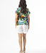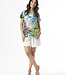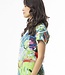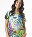 A fun and flattering cap sleeve, v-neckline t-shirt featuring a tropical leaf print. A relaxed fit for comfort; this top is both functional & fashionable! The perfect piece to brighten up your look! 100% Organic Cotton