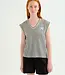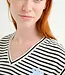 Stripped v-neck featuring an embrodired flower. 100% cotton