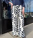 Effortlessly elegant, these wide-leg lined flowy pants feature a flat front and elastic back waist for a flattering fit, finished in a soft beige with an abstract blue floral pattern. Made with 80% Viscose, 20% Nylon