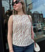 Lightweight and refined, this high-neck sleeveless tank features a soft, nature-inspired zebra print for an understated yet eye-catching look. Made with 65% Cotton, 35% Polyester