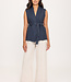 Linen meets luxury in this navy-blue sleeveless vest featuring a soft shawl collar and a tie-waist for a look that's flattering for every body type.