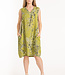 Beat the heat in this bright floral dress. Palm and leaf print pops against a bold background. Loose fit that has a slight balloon at the hips. Hits just at the knee for good coverage.