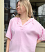 Astrid Y-Neck Half Sleeve Linen Hoodie - Pink