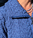 Intricate cables are expertly woven in this bold blue merino wool yarn. A zip front is easy to wear and layer into the winter. This piece will keep you warm no matter the weather! 100% Merino wool, Made in Ireland